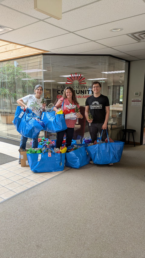 Pictures from the 2025 Christmas in July drop-off at both Halifax Hospital Pediatrics/PICU and C. S. Mott's Children's Hospital.